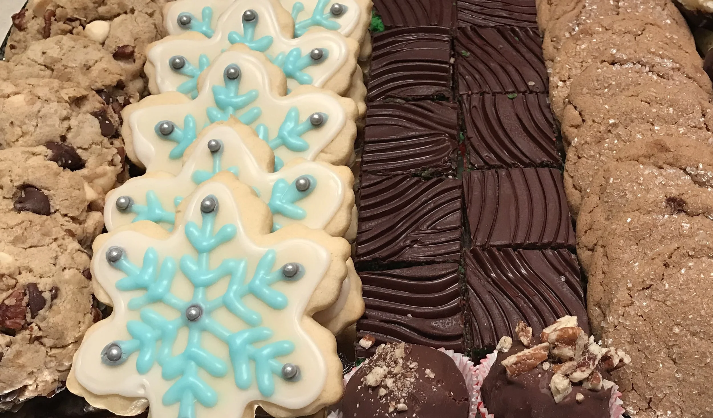 Celebrate the season with our festive Assorted Holiday Dessert Tray, a delicious collection of handcrafted treats perfect for sharing with family, friends, or coworkers. Each tray includes 30 pieces featuring five varieties (baker’s selection) of cookies, bars, and treats made from scratch with premium ingredients and holiday cheer in every bite.